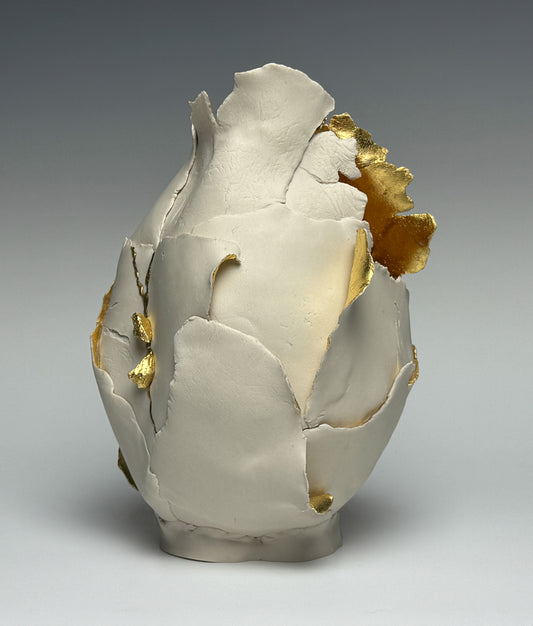 "HELD" PORCELAIN CERAMIC SCULPTURE WITH 23.75 KT GOLD LEAF