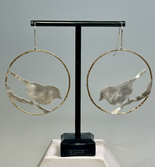 "SONGBIRD IN THE ROUND" ARTS AND CRAFT INSPIRED HOOP EARRINGS LJH116