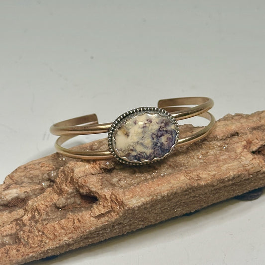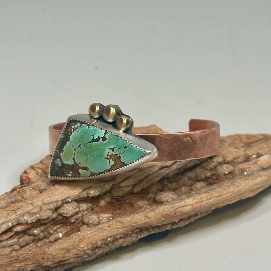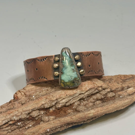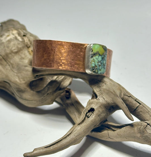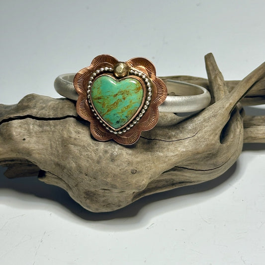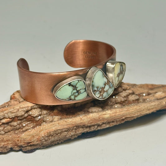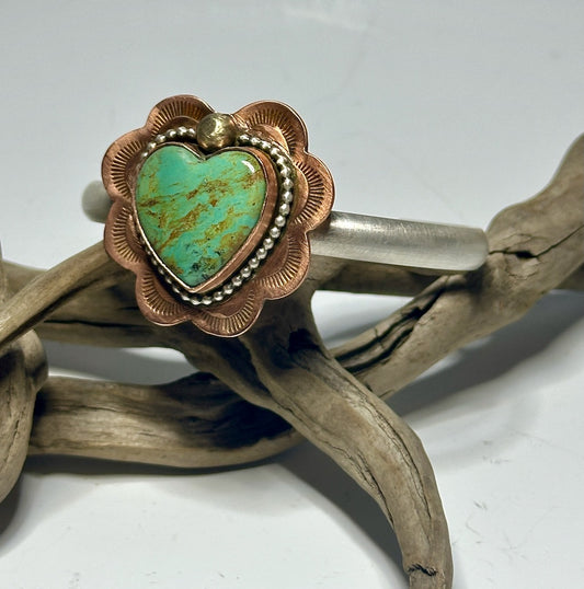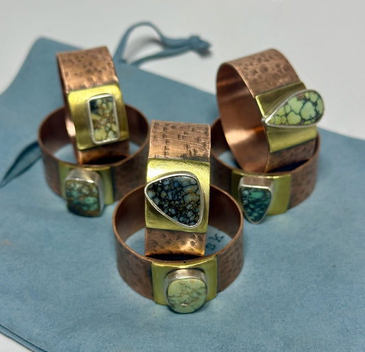 She began her self-taught metalsmith journey in 2018 to help her grieve her father's passing. Using copper, sterling silver, and brass, she creates pieces inspired by the Native Spirit. As a featured artist for Cowboys & Indians Magazine, her rustic style is unique, and her pieces have sold all over the world. Each one-of-a-kind piece is intuitively created with her healing hands out of love and gratitude.