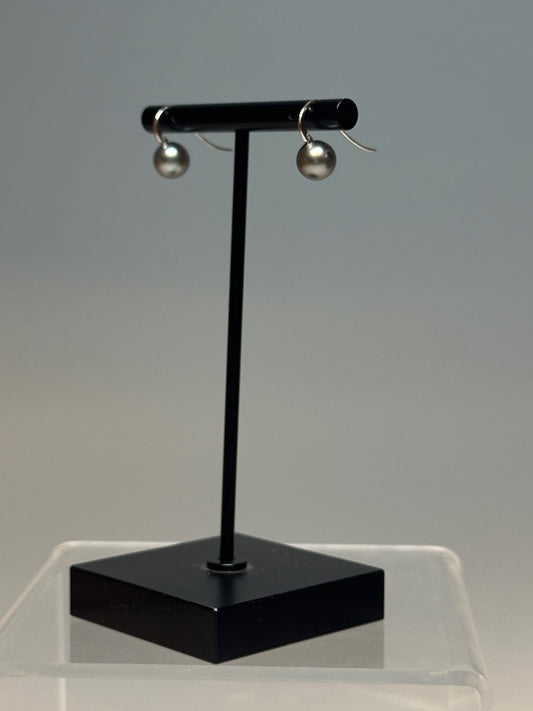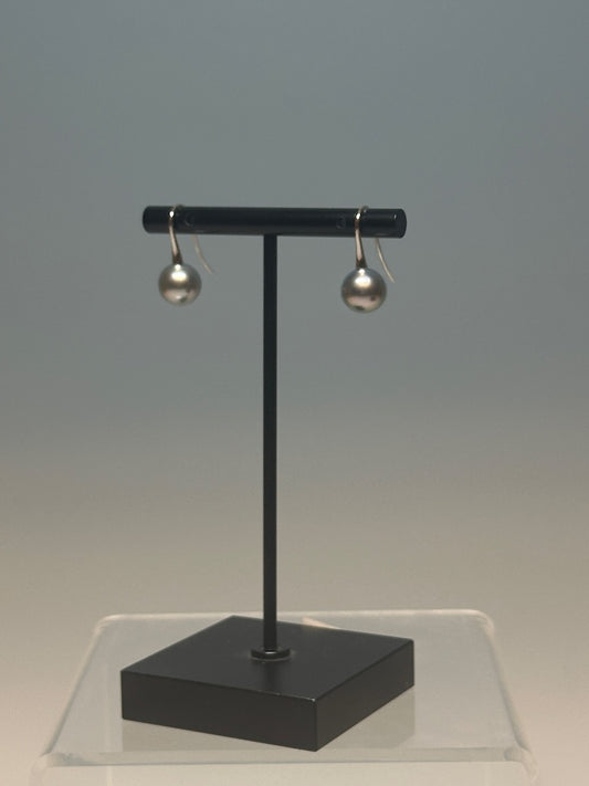18K WHITE GOLD FANCY SILVER ROUND TAHITIAN PEARL EARRINGS AV2514