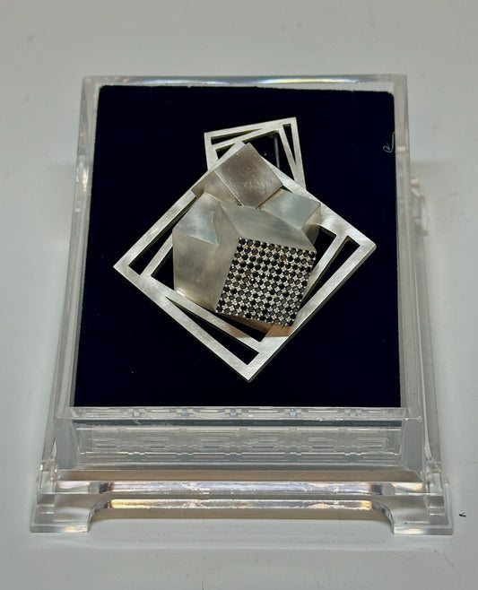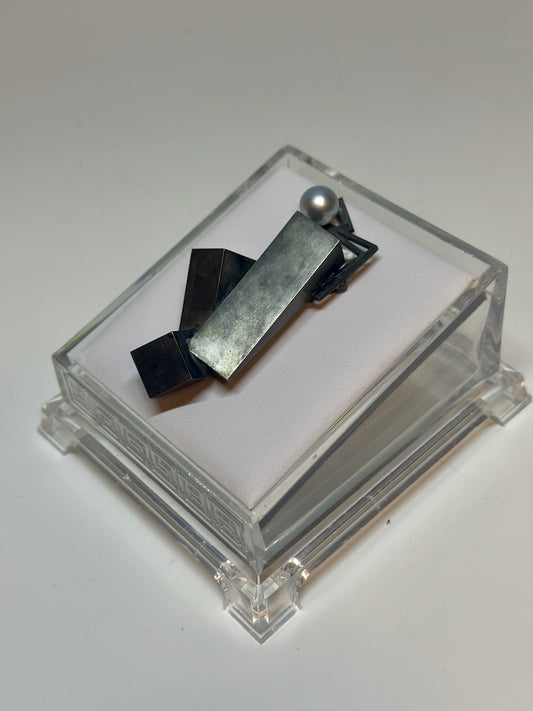 STERLING SILVER "CUBIC 2" BROOCH WITH BLACK DIAMONDS AV2539
