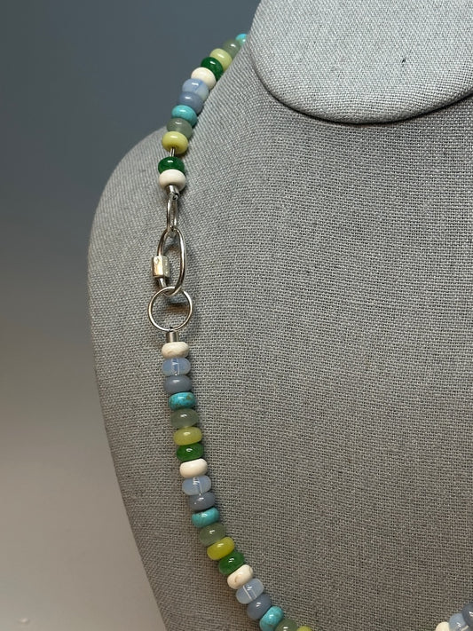 SEMI-PRECIOUS MIXED RONDELLE STONE NECKLACE WITH STERLING SILVER CARIBEANDER CLASP AV2541