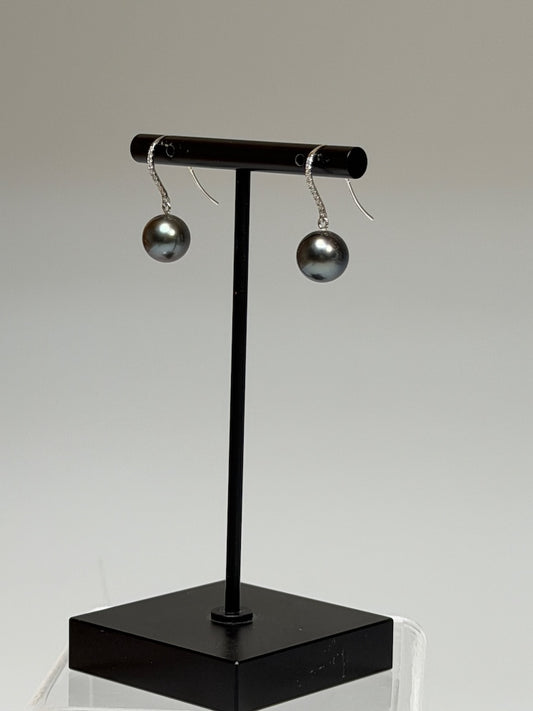 18K WHITE GOLD BLACK TAHITIAN PEARL EARRINGS WITH DIAMONDS AV2641