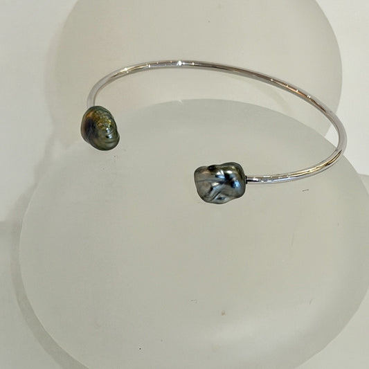 18K WHITE GOLD TAHITIAN KESHI PEARL BANGLE BRACELET AV2622