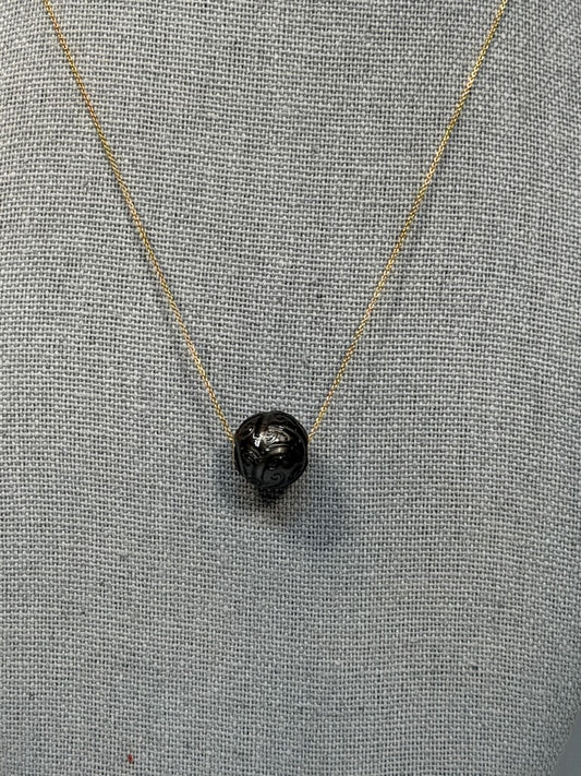 BLACK TAHITIAN HAND CARVED PEARL PENDANT AV2645