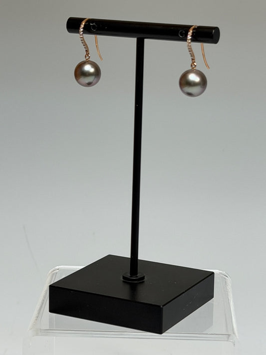18K RED GOLD BLACK TAHITIAN PEARL EARRINGS WITH DIAMONDS AV2642