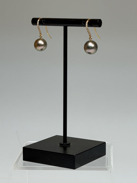 18K YELLOW GOLD BLACK TAHITIAN PEARL EARRINGS WITH DIAMONDS AV2643