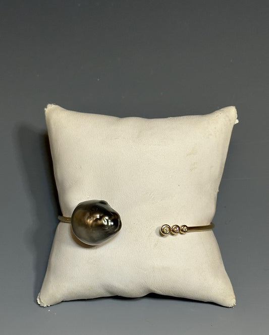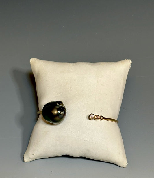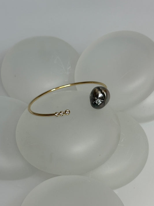 COSMO BANGLE with 3 diamonds and Tahitian Baroque Pearl AV112