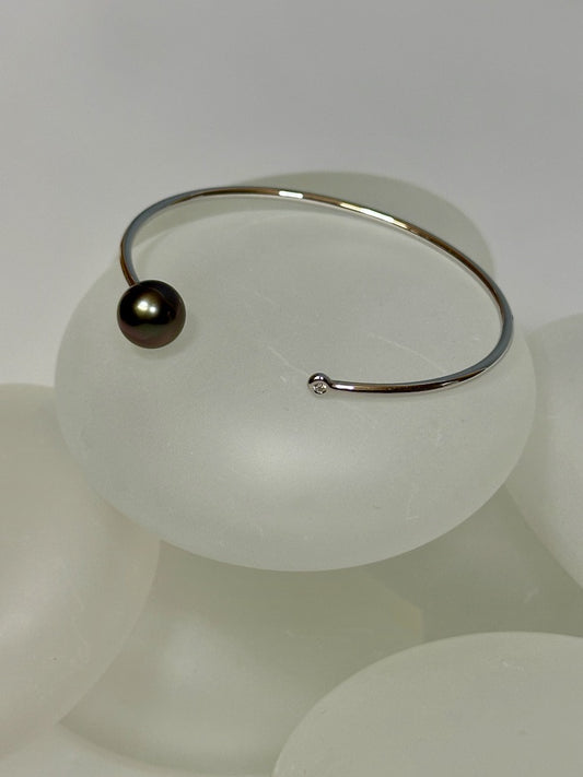 "Cosmo" Bangle Bracelet with Tahitian Pearl and Diamonds AV110