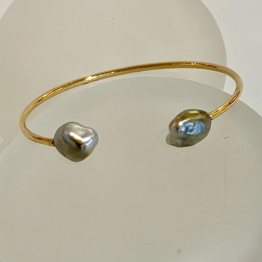 18K YELLOW GOLD TAHITIAN KESHI PEARL BANGLE BRACELET AV2619