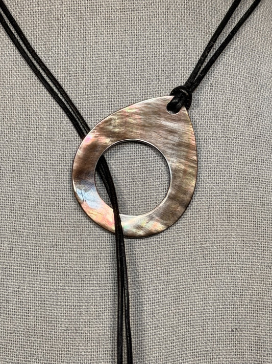 CIRCLED TAHITIAN PEARL & MOTHER OF PEARL LEATHER NECKLACE AV2615