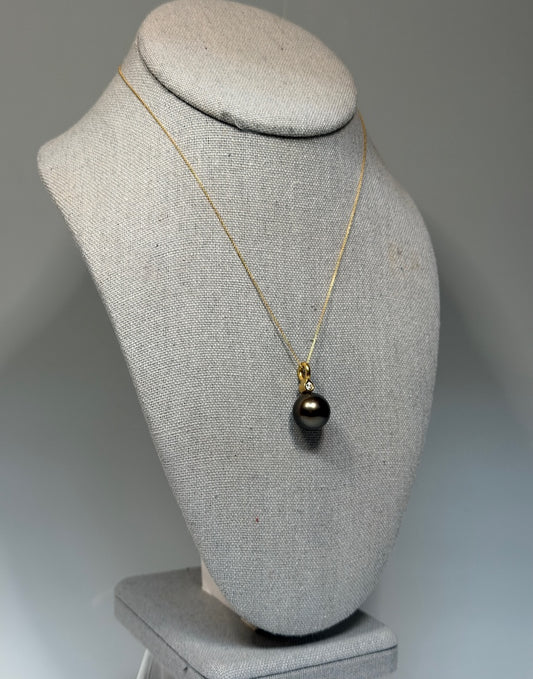 18K YELLOW GOLD FANCY ROUND TAHITIAN PEARL & NATURAL DIAMOND PENDANT WITH 18K GOLD NECKLACE AV2626