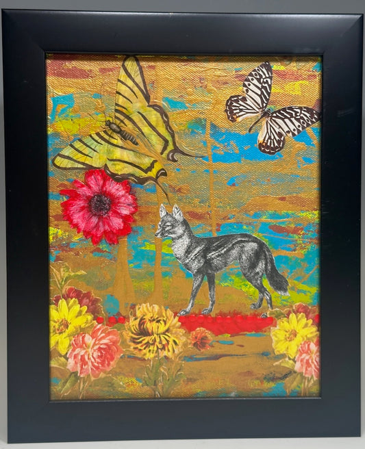 "BE A SMART FOX" ORIGINAL COLLAGE ACRYLIC PAINTING/FRAMED
