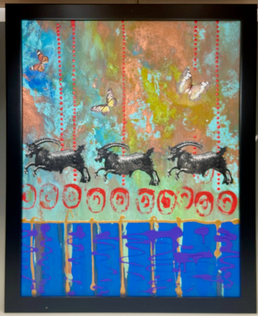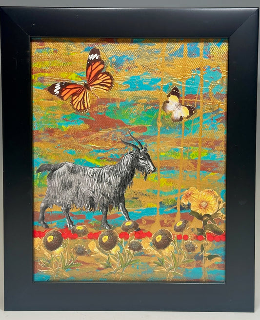 "GET MY GOAT" ORIGINAL COLLAGE ACRYLIC PAINTING/FRAMED