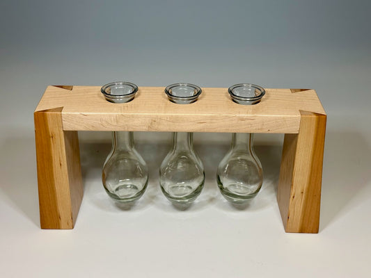 2 GLASS WOODEN BUD VASE HOLDER WITH SPALTED MAPLE AND CHERRY