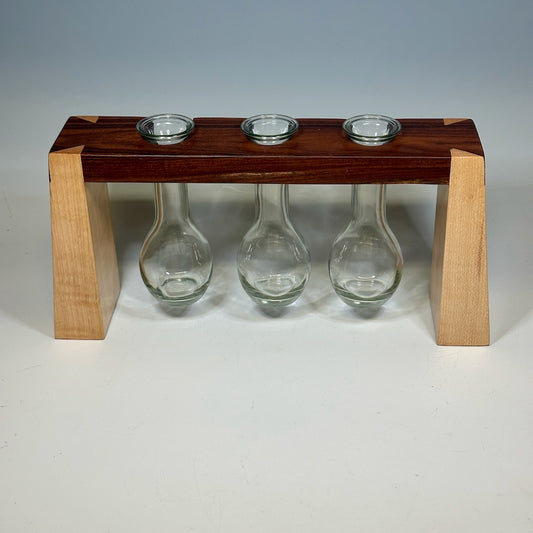 3 GLASS WOODEN BUD VASE HOLDER WITH BOLIVIAN ROSEWOOD