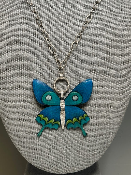 BLUE BUTTERFLY NECKLACE ON 20" STERLING SILVER CHAIN DK265