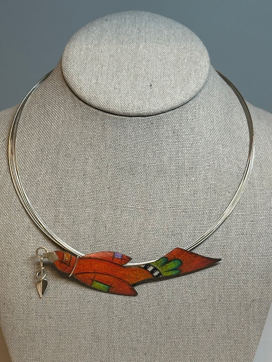 RED BIRD CHOKER ON STAINLESS CABLE NECK WIRE DKA233