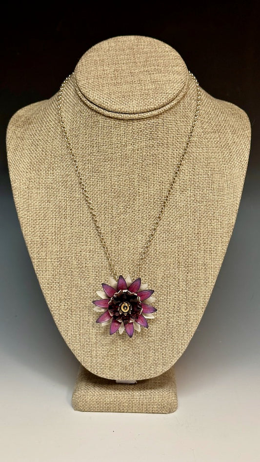 AMETHYST LOTUS WITH AMETHYST BEADS AND 18" STERLING SILVER ROLLS CHAIN DKA122