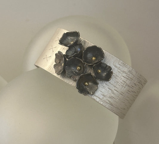 STERLING SILVER CUFF BRACELET WITH 7 COPPER FLOWERS DK264