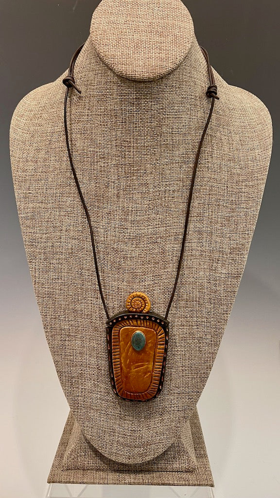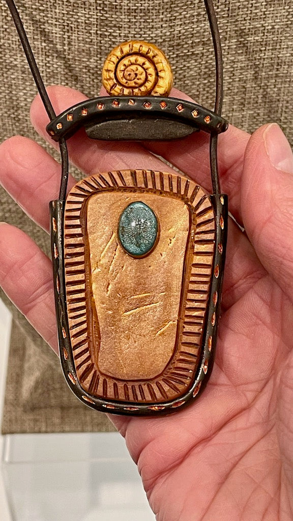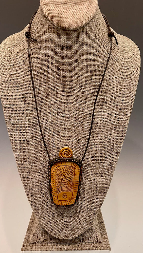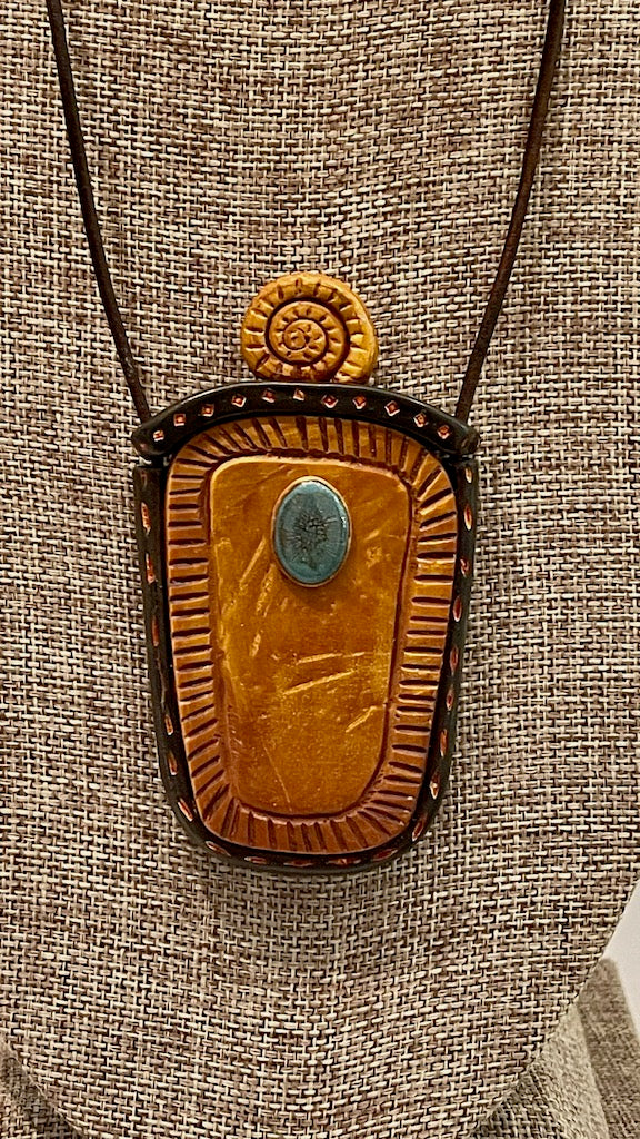 DOUBLE SIDED HAND CARVED POLYMER CLAY PENDANT PCN498