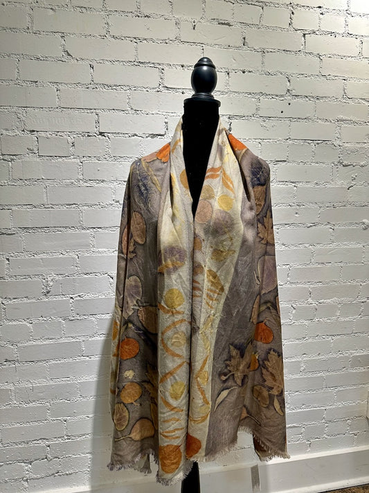 HAND DYED ECO-PRINTED EXTRA LARGE SHAWL F305