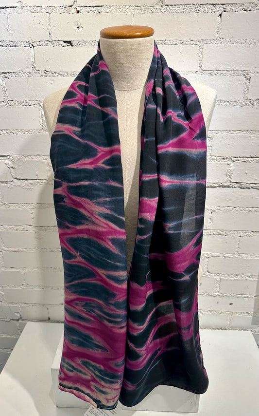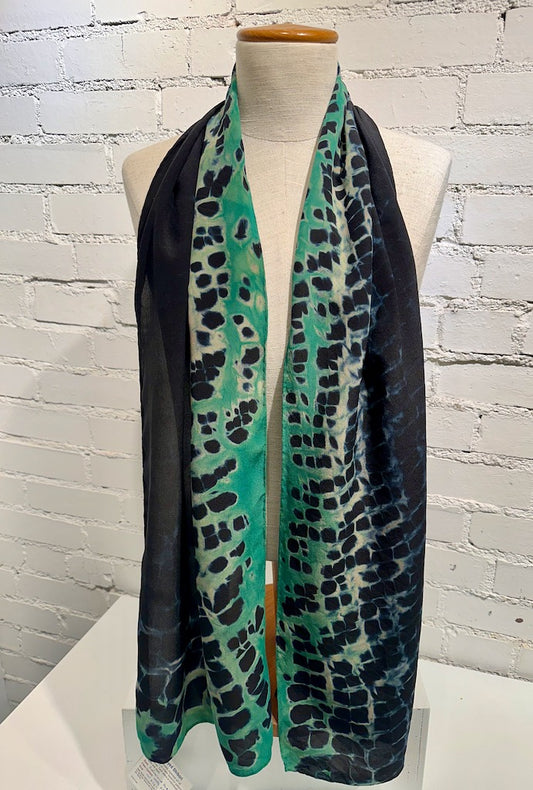 HAND DYED 100% SILK CREPE DE CHINE SHIBORI SCARF F286