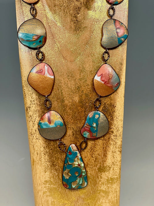 HOLLOW BEAD POLYMER CLAY NECKLACE WITH COPPER DKPCN710
