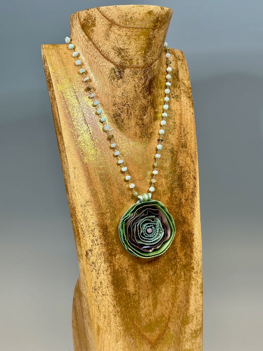 RIBBON EFFECT POLYMER CLAY NECKLACE WITH PERUVIAN OPAL ROSARY CHAIN NECKLACE DKPCN711