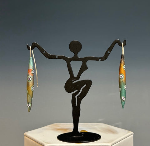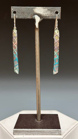 LONG NARROW POLYMER CLAY EARRINGS ON BRONZE EAR WIRES PCE848