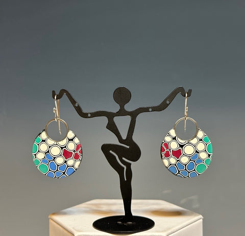 MULTI COMPONENT POLYMER CLAY EARRINGS ON COPPER CIRCLES AND EAR WIRES PCE846