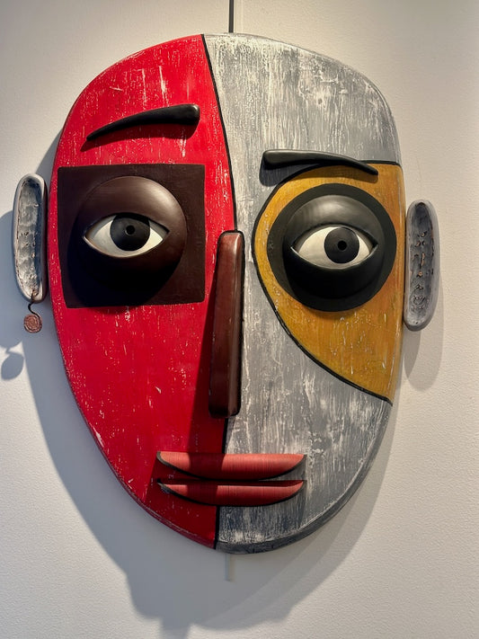 "MASK OF MOODS II" MIXED MEDIA WOOD WALL SCULPTURE