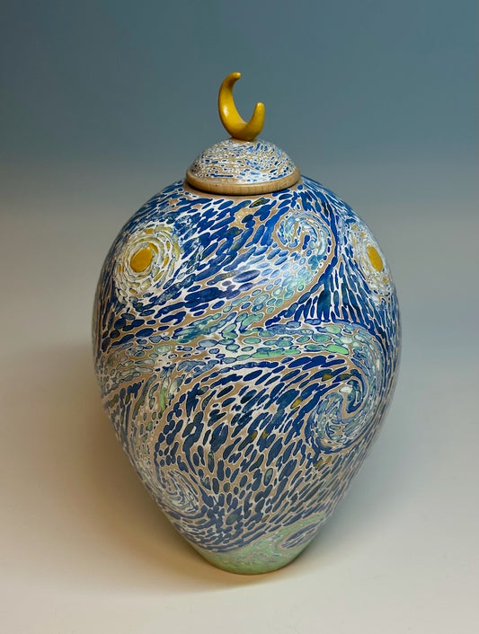 "STARRY SEAS" MIXED MEDIA WOOD SCULPTURE