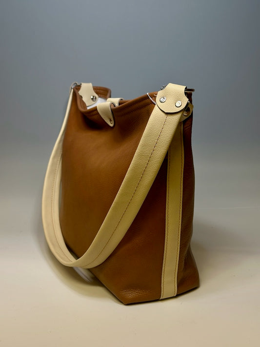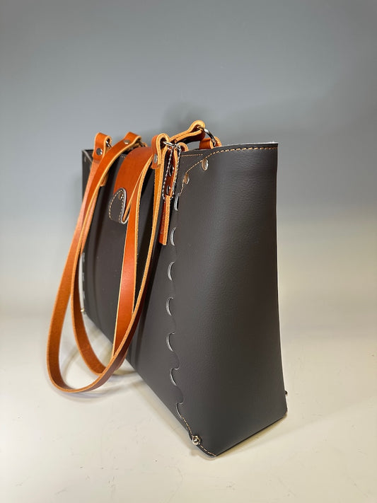 MILK CHOCOLATE LEATHER OPEN TOTE II308.1