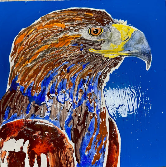 "RED TAIL HAWK" ORIGINAL MIXED MEDIA PAINTING ON BOARD/FRAMED