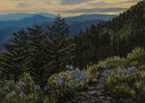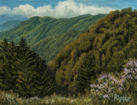 "SPRING LIGHT AND RHODODENDRONS FROM COWEE MOUNTAINS OVERLOOK Original Framed Oil Painting