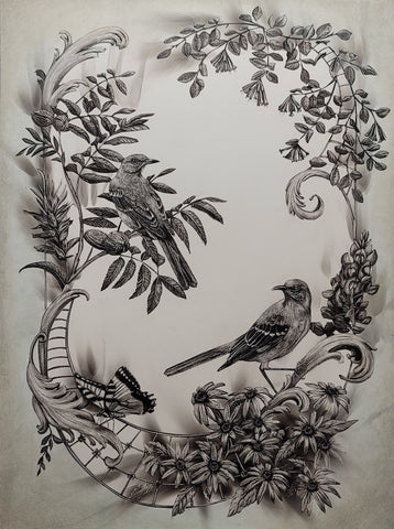 "SOUTHERN NATURE" Original Fumage Drawing on Clay Board/Framed
