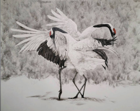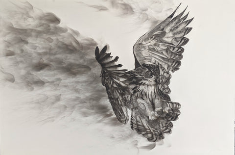"THE RAVENS" Original Fumage Drawing on Clay Board/Framed