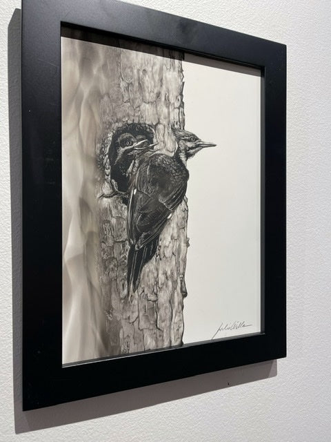 “Pileated Woodpecker and Chicks” Fumage Drawing on Clay Board
