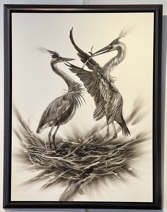 "Return to the Rookery" Original Fumage Drawing on Clay Board