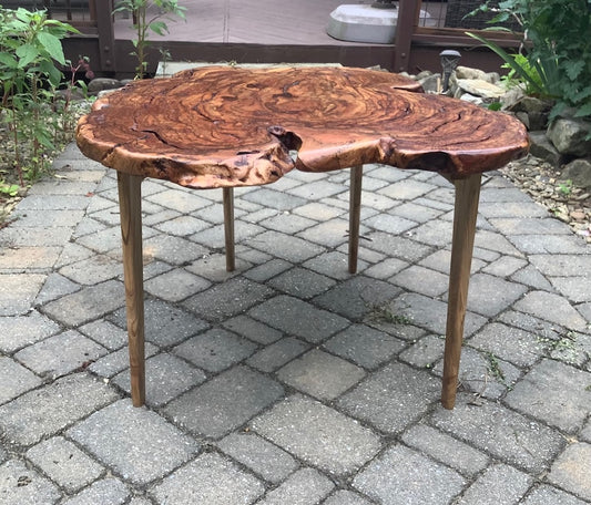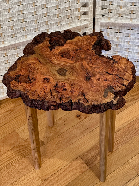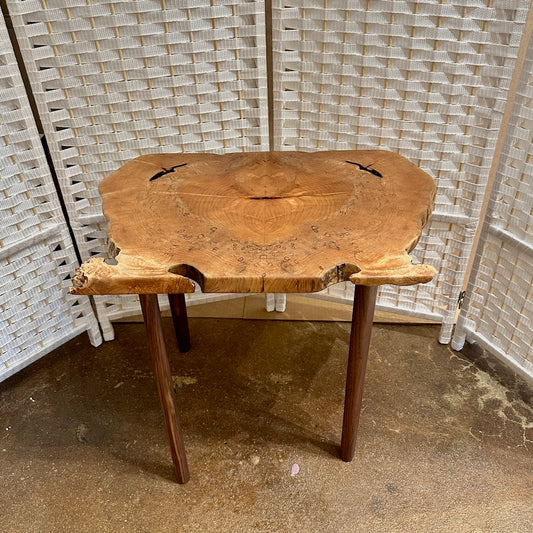 SMALL CHERRY BURL TABLE WITH AMBROSIA MAPLE LEGS