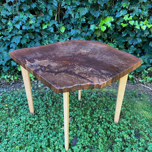 SMALL SPALTED MAPLE TABLE WITH WALNUT LEGS II