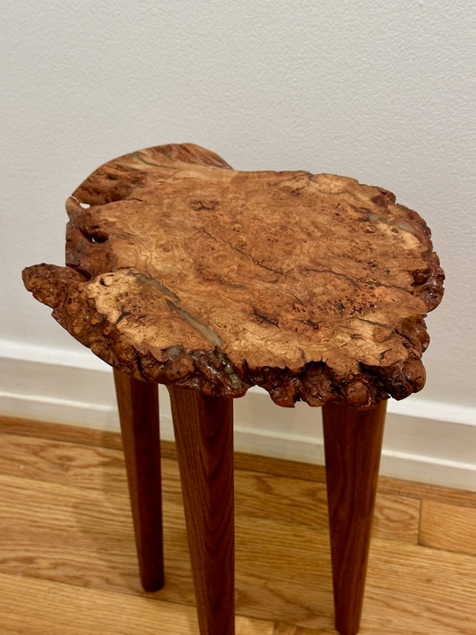Sold outSMALL WALNUT BURL OCCASIONAL TABLE
