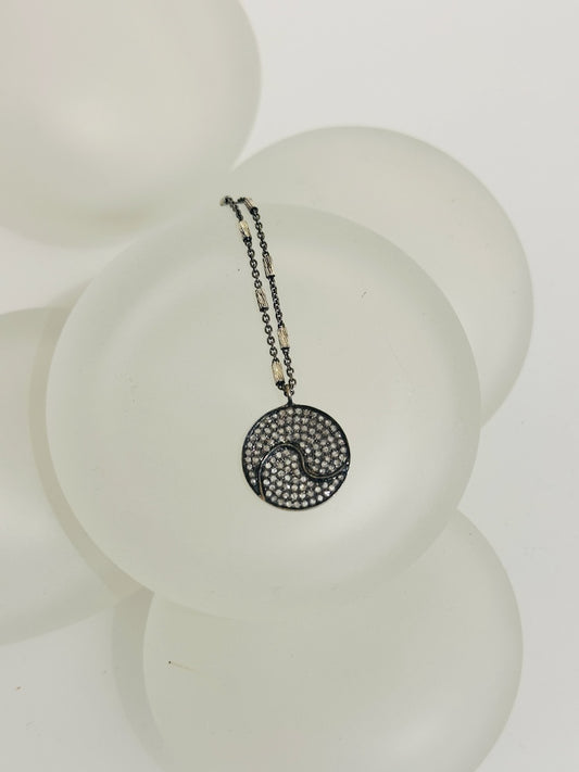 OXIDIZED STERLING SILVER AND DIAMOND YIN/YANG SYMBOL STATEMENT NECKLACE LCN2018