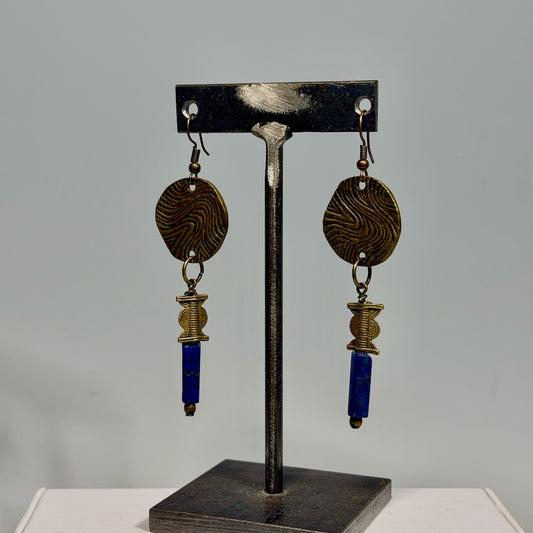 LAPIS AND BRASS DROP EARRINGS LCE2023