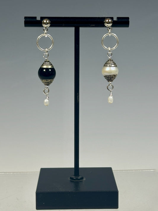 BLACK LAVA AND WOOD DROP EARRINGS LCE2005