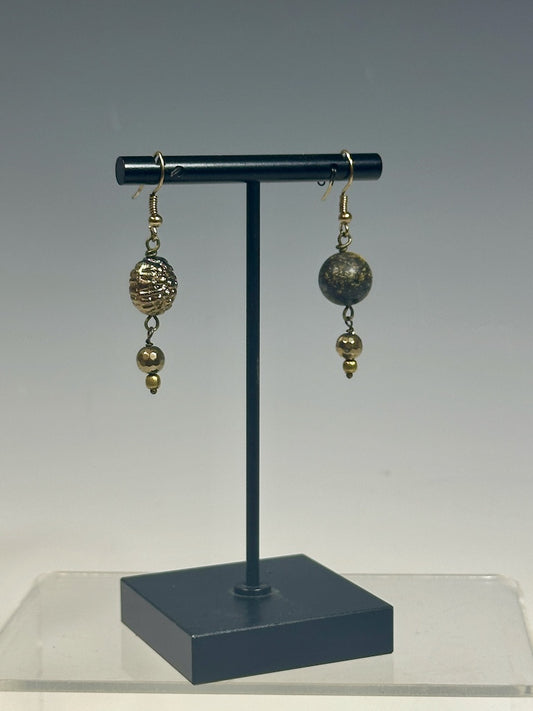 TORCHED BRASS AND GOLD PYRITE DROP EARRINGS LCE2002