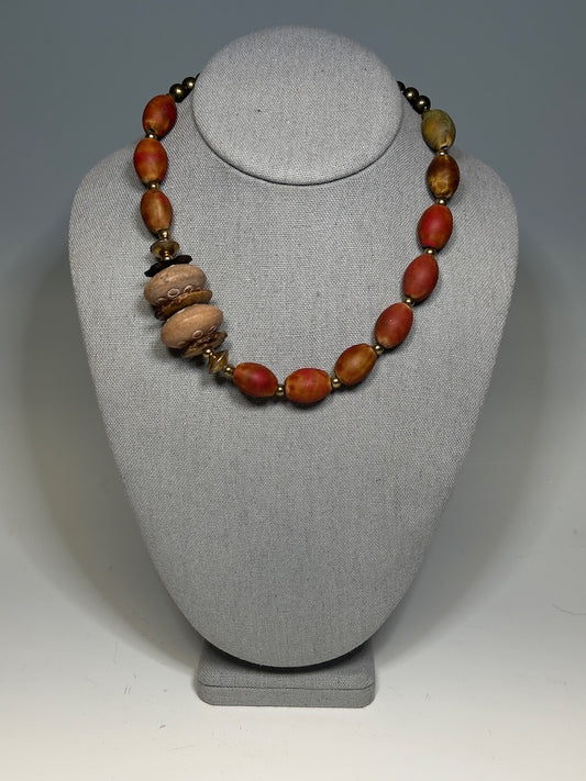 MIXED METAL AND STONE STATEMENT NECKLACE WITH COPPER HEART TOGGLE LCN1097