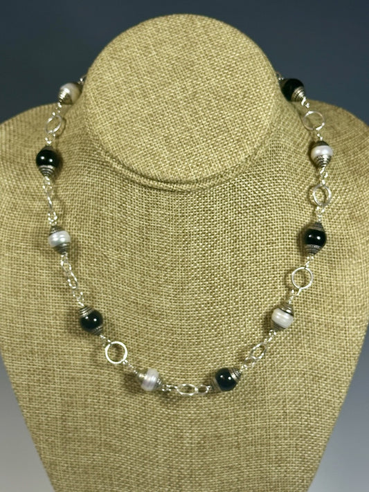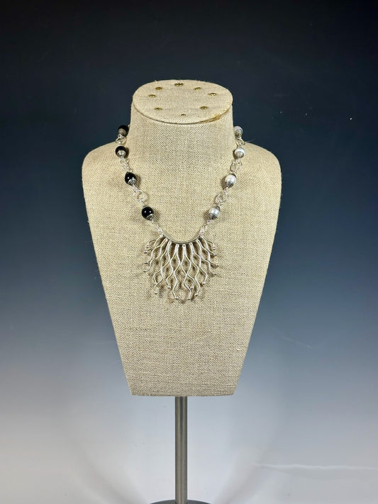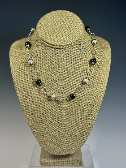 VINTAGE PHOENIX BUTTON NECKLACE WITH HEMATITE, PYRITE AND STERLING SILVER LCN1099