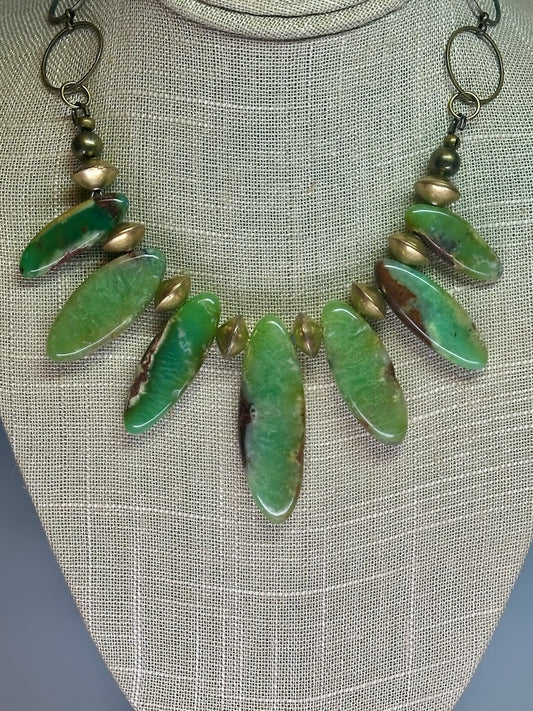 SMOOTH CHRYSOCOLLA AND BRASS STATEMENT NECKLACE LCN769